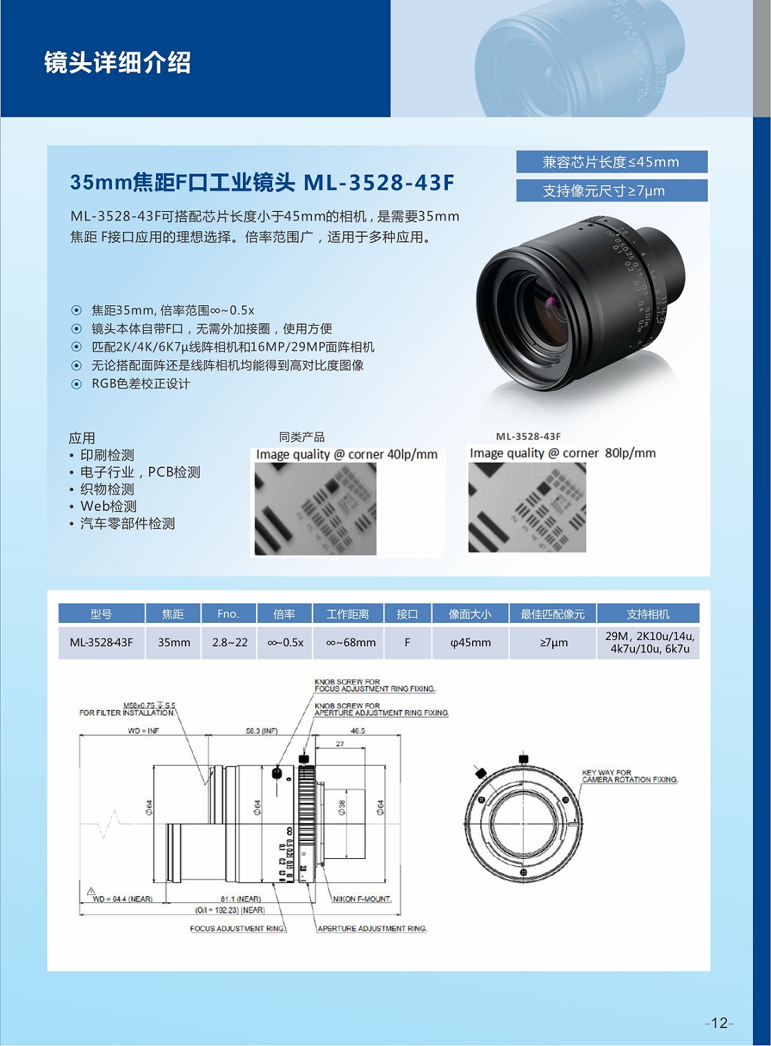 匹配2K/4K/6K7μ線陣相機和16MP/29MP面陣相機