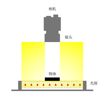 背光源是一種平板式光源,經(jīng)過優(yōu)化設計的LED陣列分布于光源底部,發(fā)出光經(jīng)過導光板后所形成均勻背光,亮度比側(cè)部導光提高50%以上亮度,通常用于外形輪廓檢測。