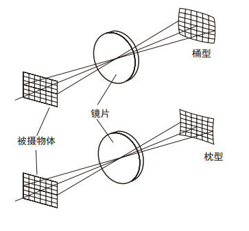 被攝物體經過鏡頭拍攝后在成像面上變成彎曲的現象?;兎譃橥靶突兒驼硇突儭?br />