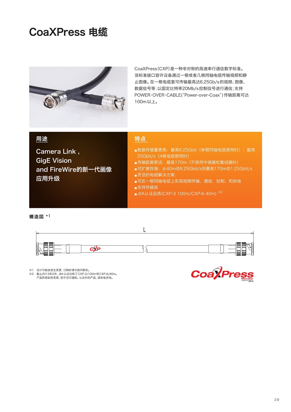 ■ ■JIIA認(rèn)證品質(zhì)(CXP-3 100m/CXP-6 40m)
