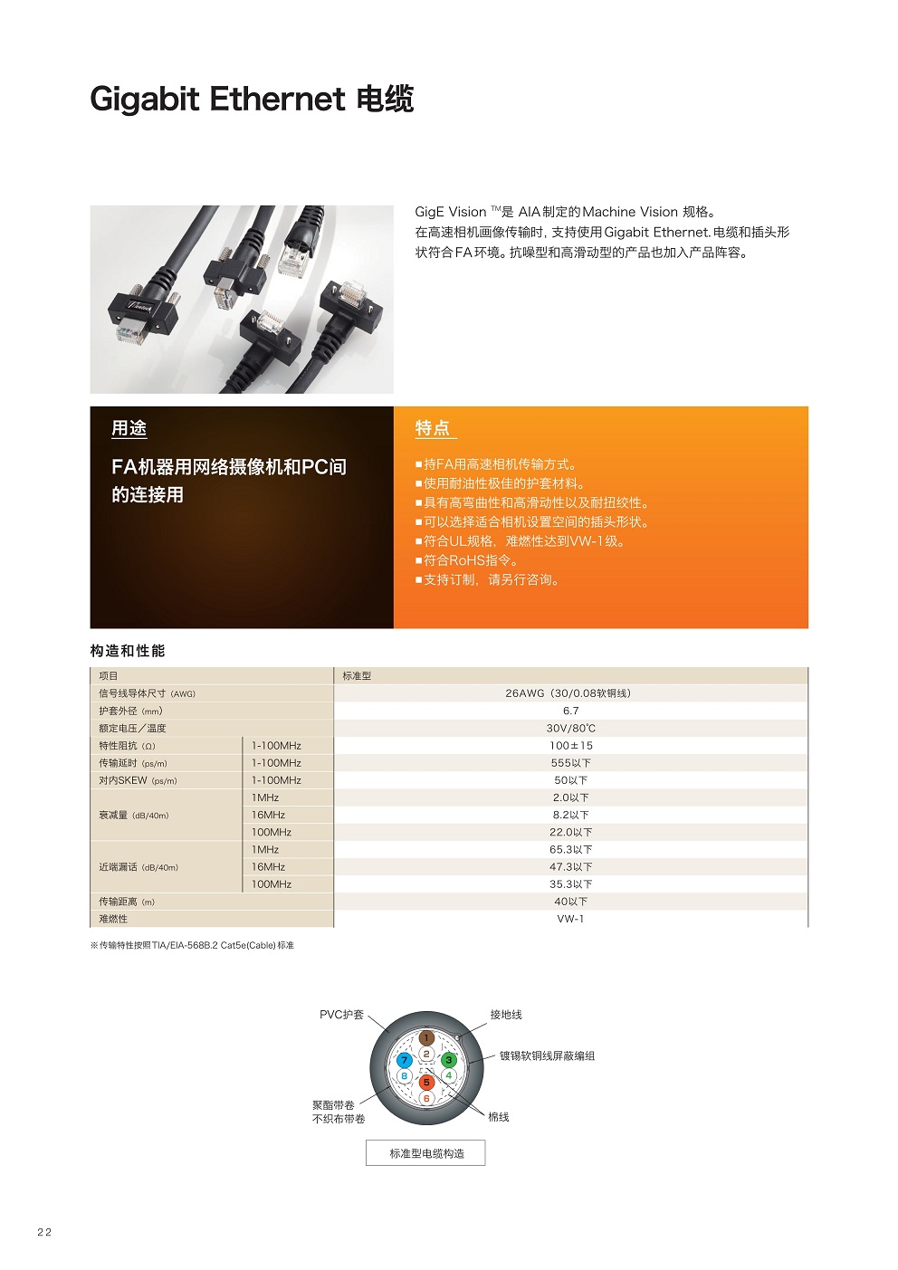 ■ ■具有高彎曲性和高滑動性以及耐扭絞性。
